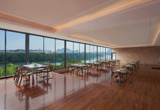 桂林喜來登飯店擁有3個匠心獨運的餐廳及1個大堂酒吧。就坐國泰中餐廳,賞漓江美景,品味桂北特色菜品佳肴,讓美味于舌尖綻放;頂層的臨江韻·味餐廳,您可于此欣賞翠綠山景和秀美漓江,盡享氛圍輕松的餐飲體驗;雅琴咖啡廳位于21米高的玻璃天窗之下,提供全天候餐飲服務及琳瑯滿目的海鮮自助晚餐。品茗休憩,何不前往桂林喜來登飯店大堂酒吧,在開放式共享空間中或商談、或聚會、或獨處,度過休閑愜意的時光。桂林喜來登酒店擁有十二個多功能會議廳及完善的會議設施和宴會設施。其中,宴會廳能輕松容納450人次同席的會議臺型,還可拆分為兩個相連的獨立會議廳;在第二層,靈活多變的桂林廳、北京廳、成都廳、天津廳和西安廳滿足舉辦各類高端會務活動需求;七層的臨江會議廳以翠綠山巒與雋美漓江為背景,于山水間開啟與會者靈感會務之旅。桂林喜來登飯店專業的會議定制服務及完善的會議設施是舉行學術研討會、商務會議、私人宴請及大型活動的理想場所。